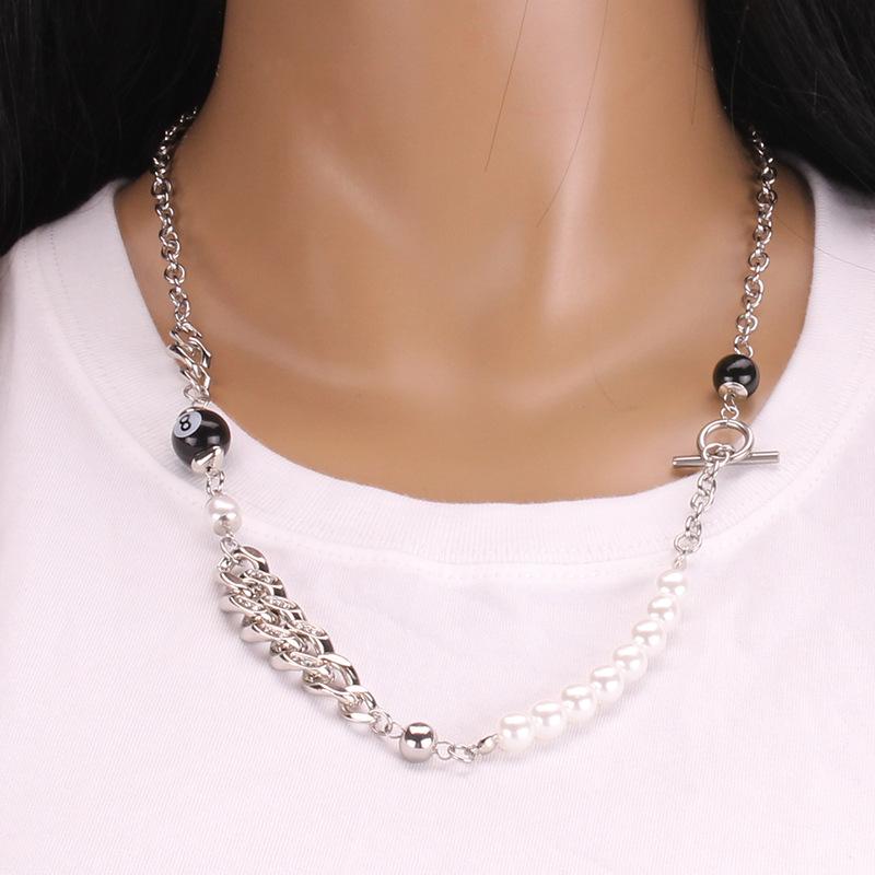 Short sweater chain hip-hop glass pearl diamond necklace stitching OT buckle stainless steel necklace