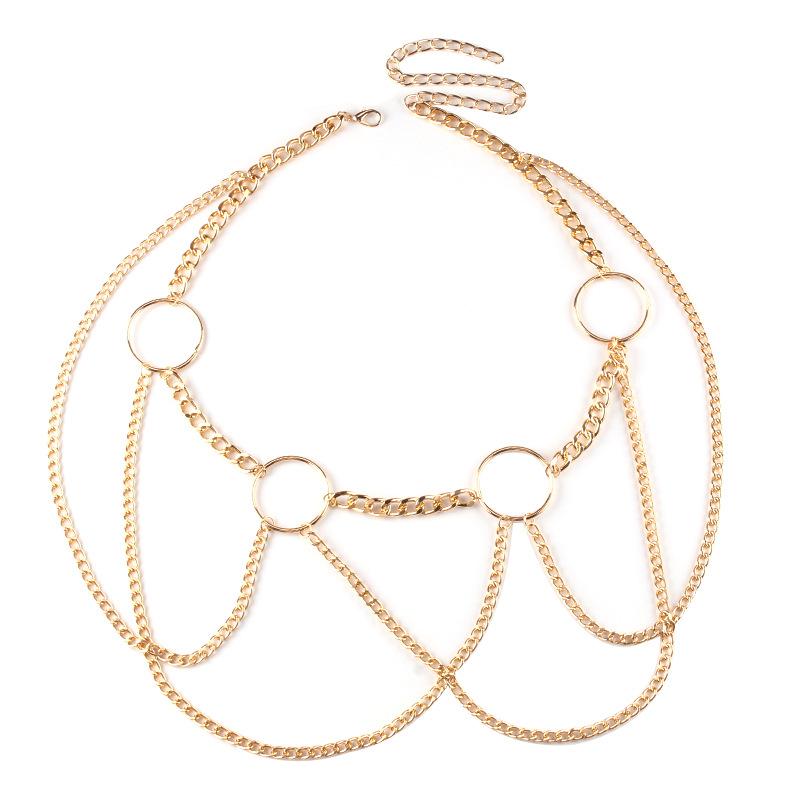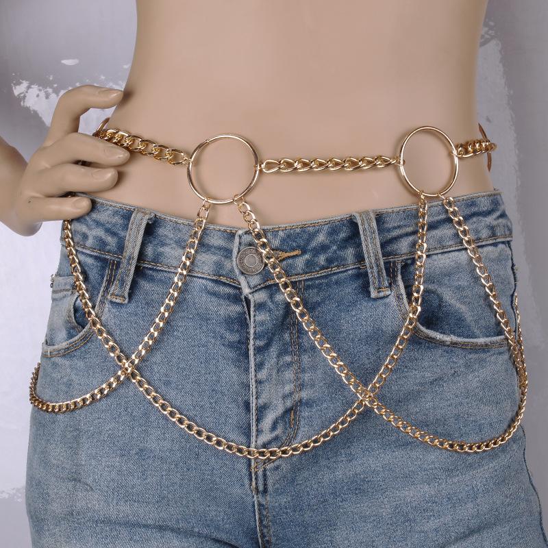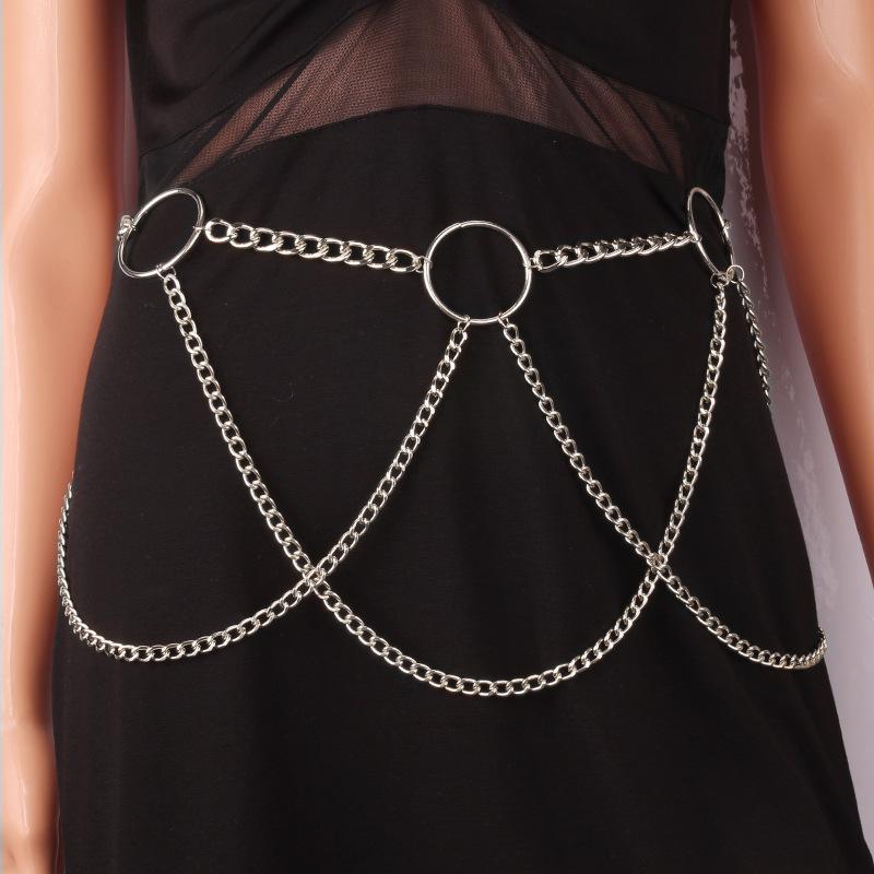 Simple and versatile sexy waist chain ins exaggerated chain tassel geometric ring body chain