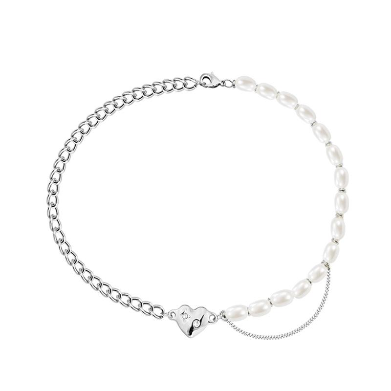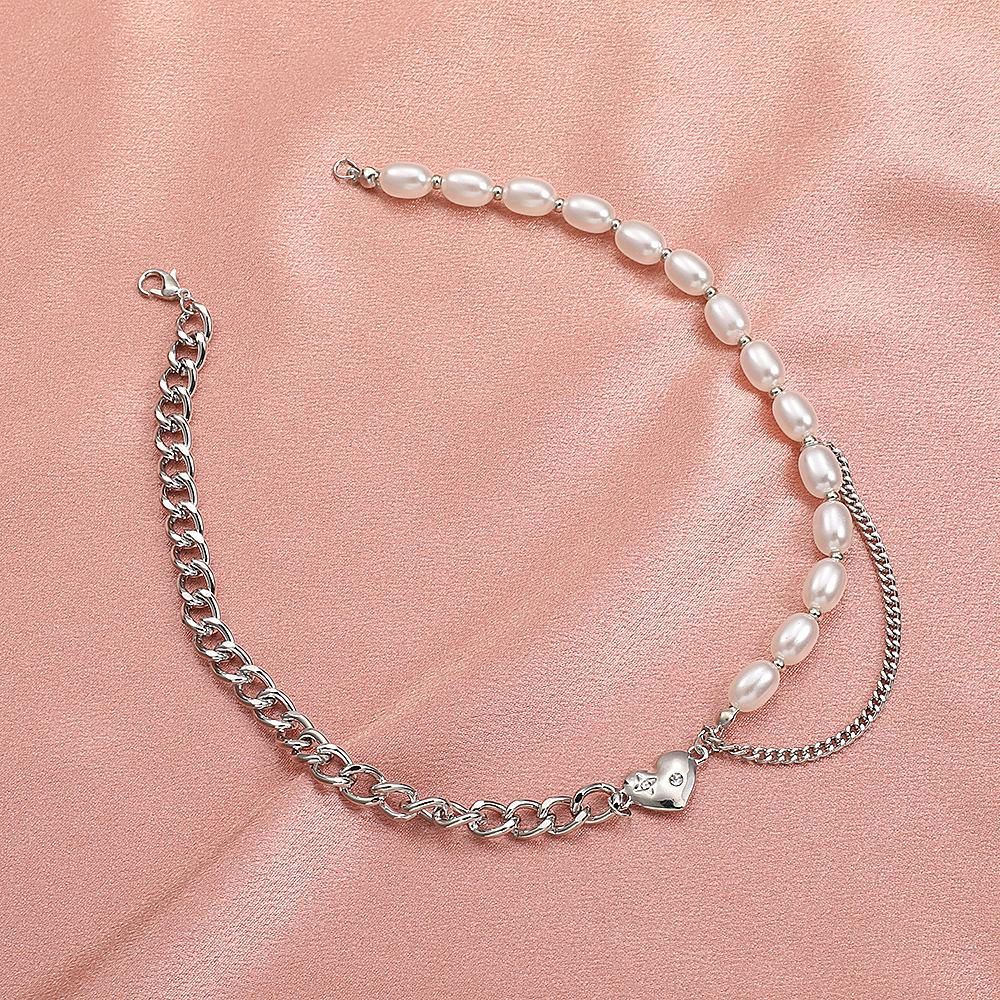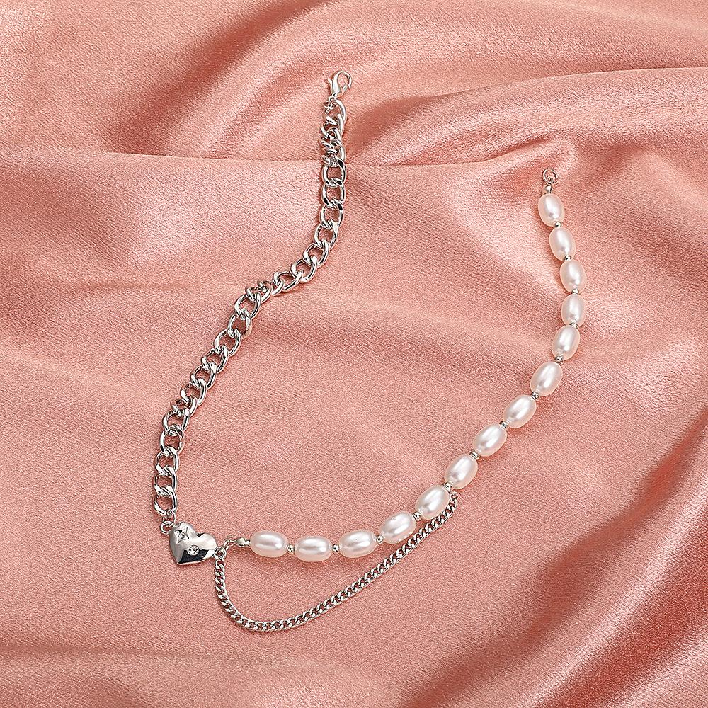 Simple pearl stitching necklace ins personality metal love choker clavicle chain net red chain necklace