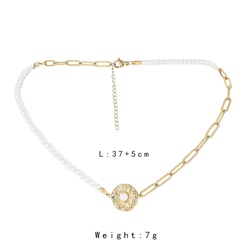 Simple stainless steel gold short round sun coin pendant ins titanium steel pearl necklace female