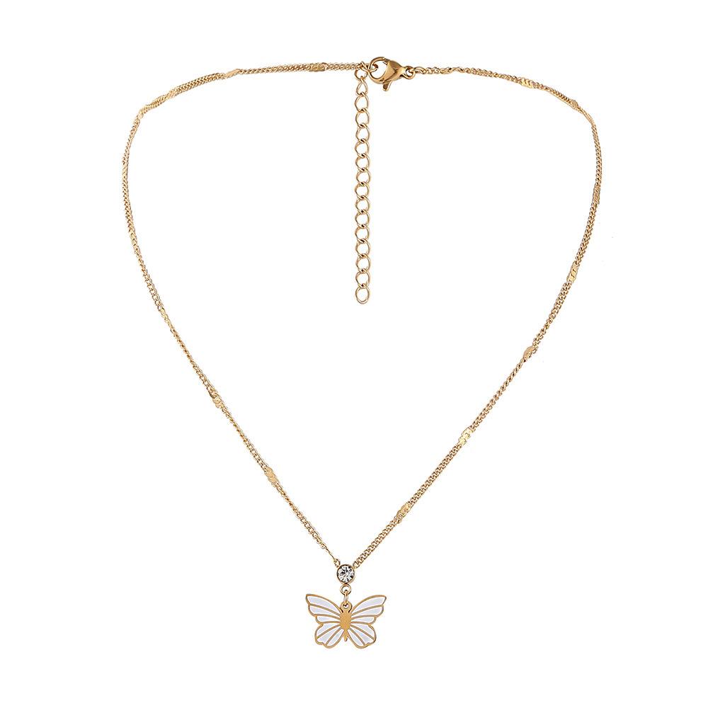 Simple Stainless Steel Zircon Butterfly Pendant Clavicle Chain Niche Exquisite Titanium Steel Gold-plated Color Preserving Necklace