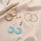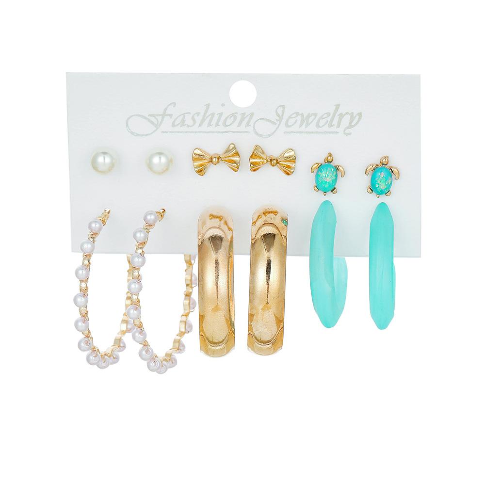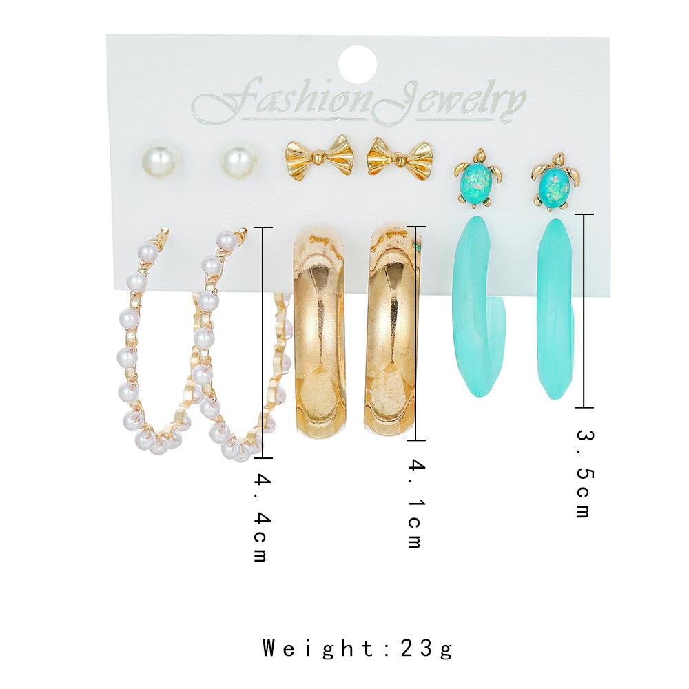 Simple trendy fresh pearl bow sea turtle earring fashion creative sky blue C-shaped earring set
