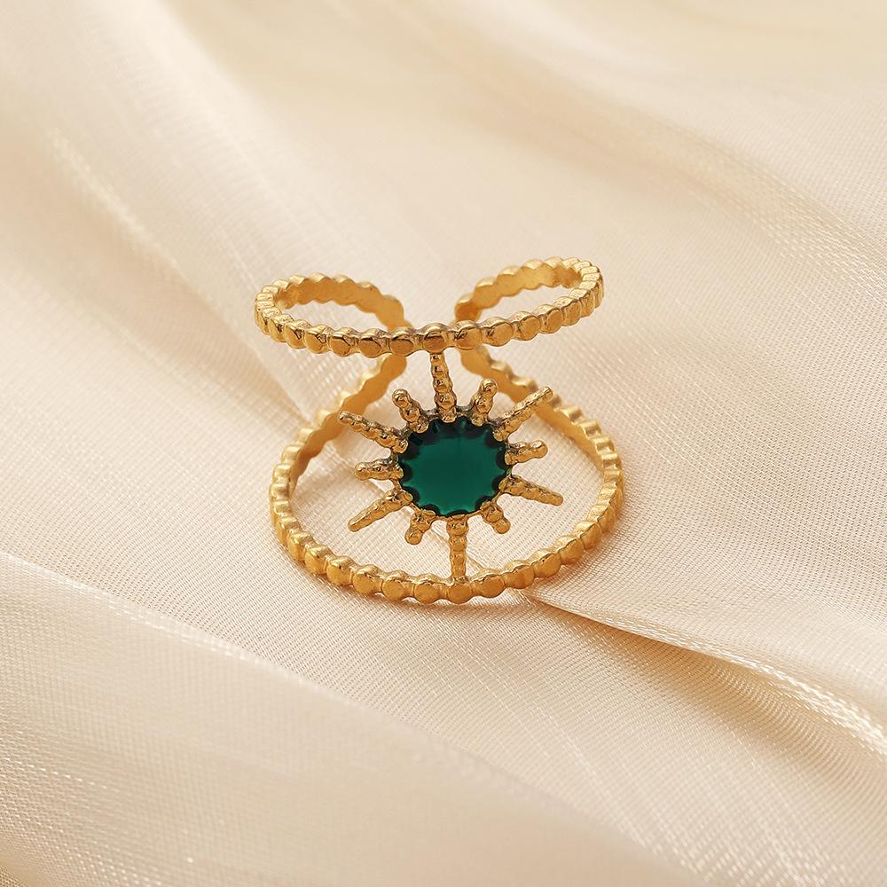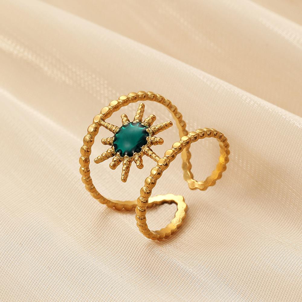 Stylish and simple personality niche design high-end women's stainless steel opening sun blue dripping oil ring