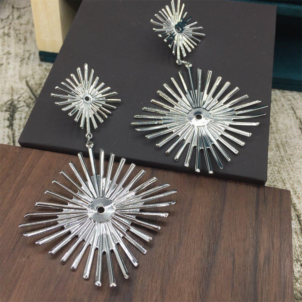 Summer geometric double diamond fence fried fur earrings night party exaggerated ornaments