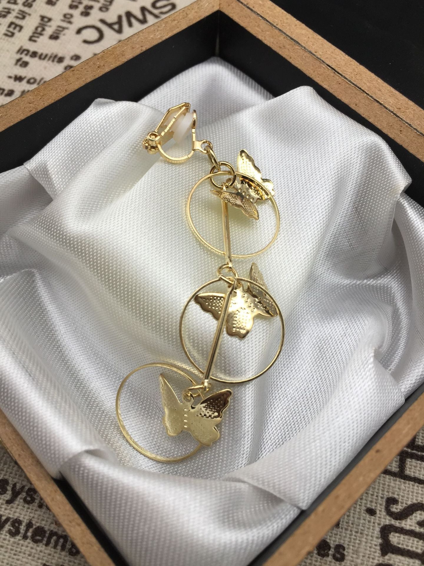 Three round butterfly string ear clip without ear piercing jewelry platform