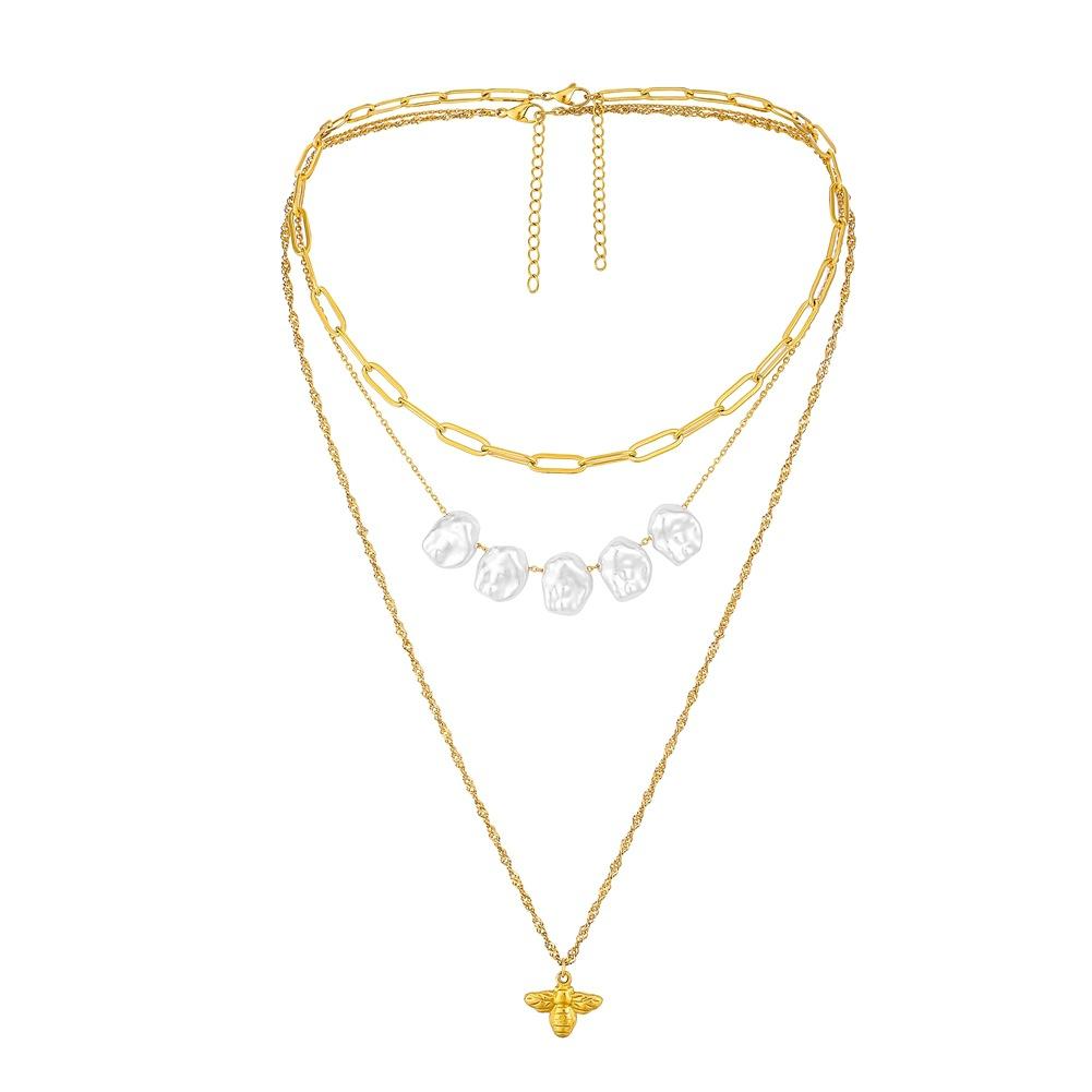 Titanium steel color-preserving bee necklace multi-layer irregular pearl pendant adjustable small animal jewelry
