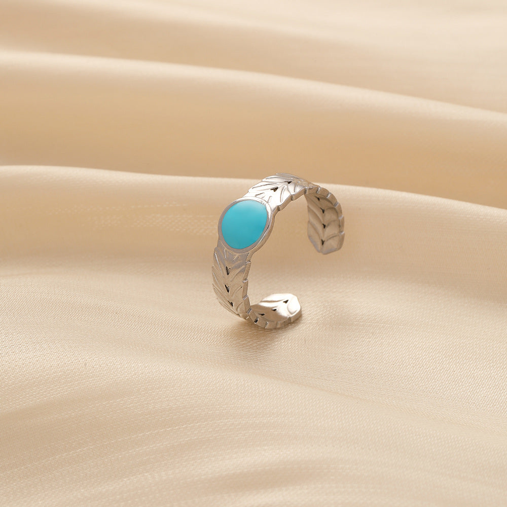 Trendy Fashion Retro Ladies Creative Design Stainless Steel Opening Adjustable Wheat Spike Oil Drop Ring