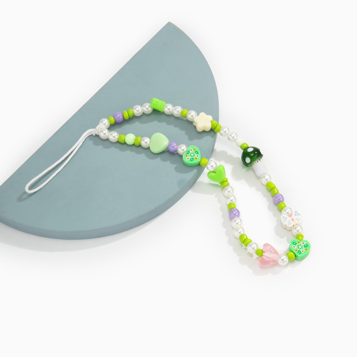 Trendy Mushroom Imitation Pearl Tassel Mobile Phone Chain Fashion Street Shot Contrasting Color Smiley Alphabet Mobile Phone Ornament