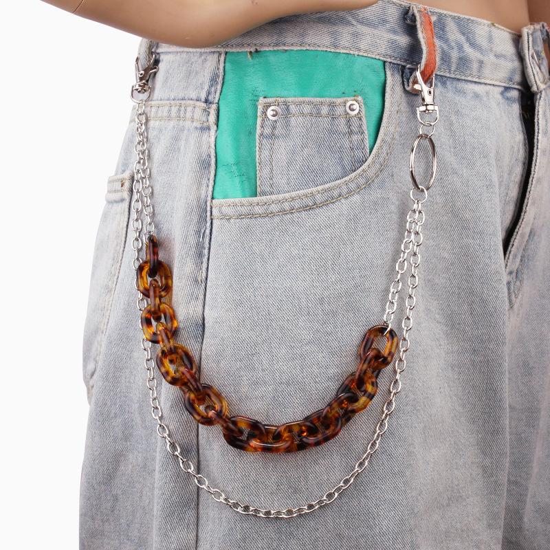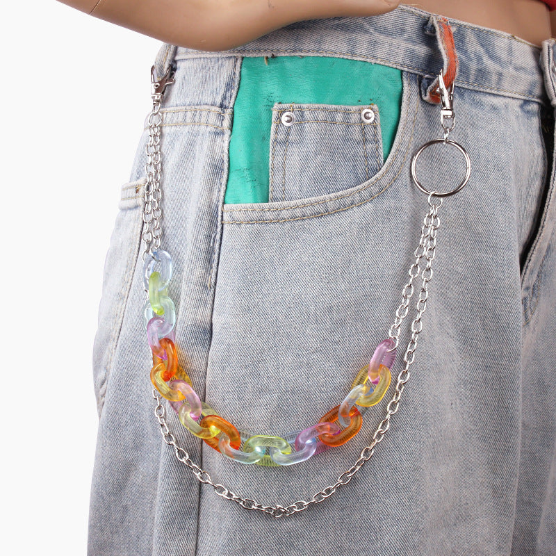 Trendy street retro double-layer acrylic trouser chain hip-hop trouser waist chain hanging chain belt clothing accessories