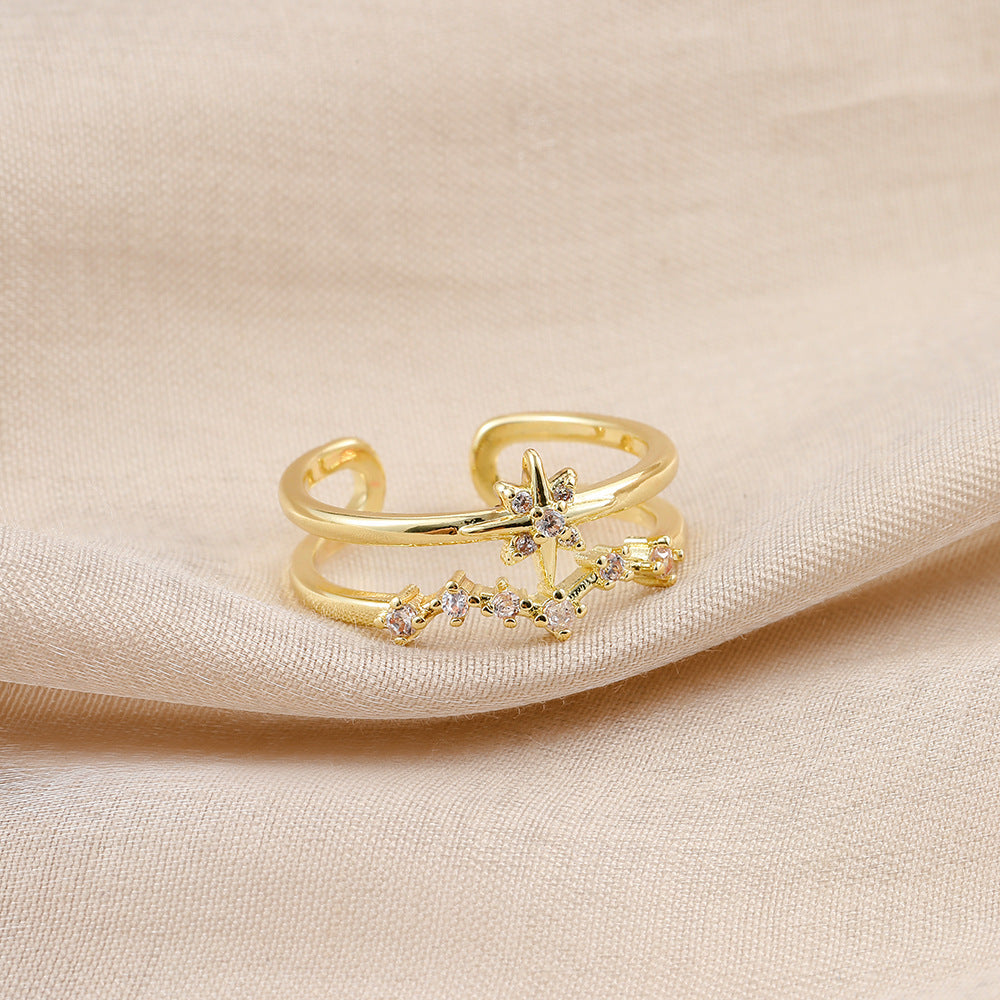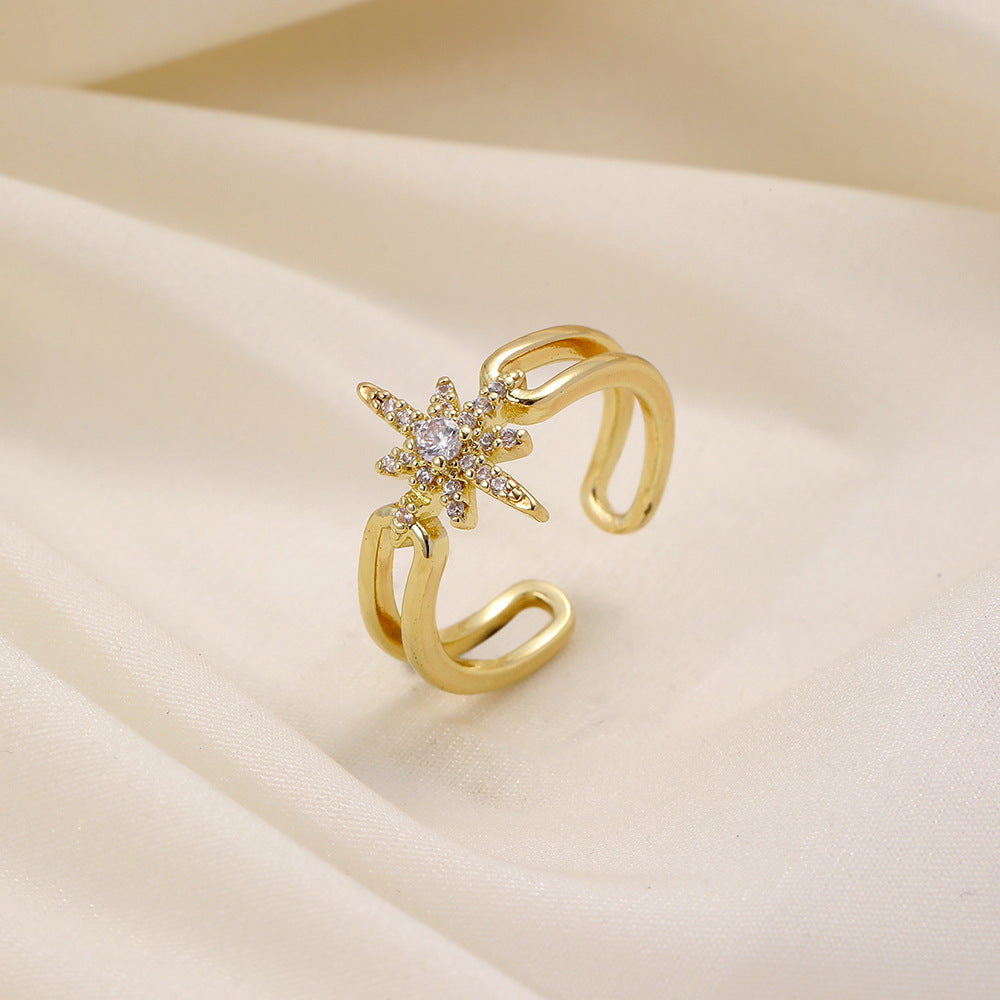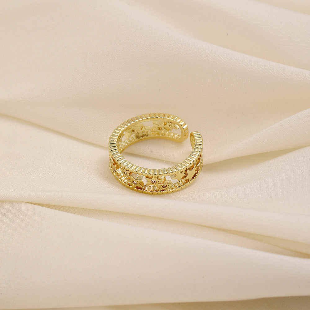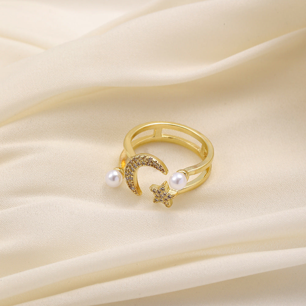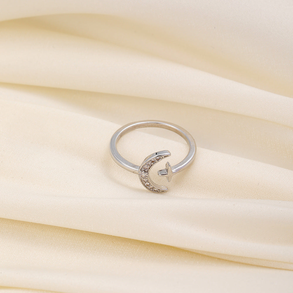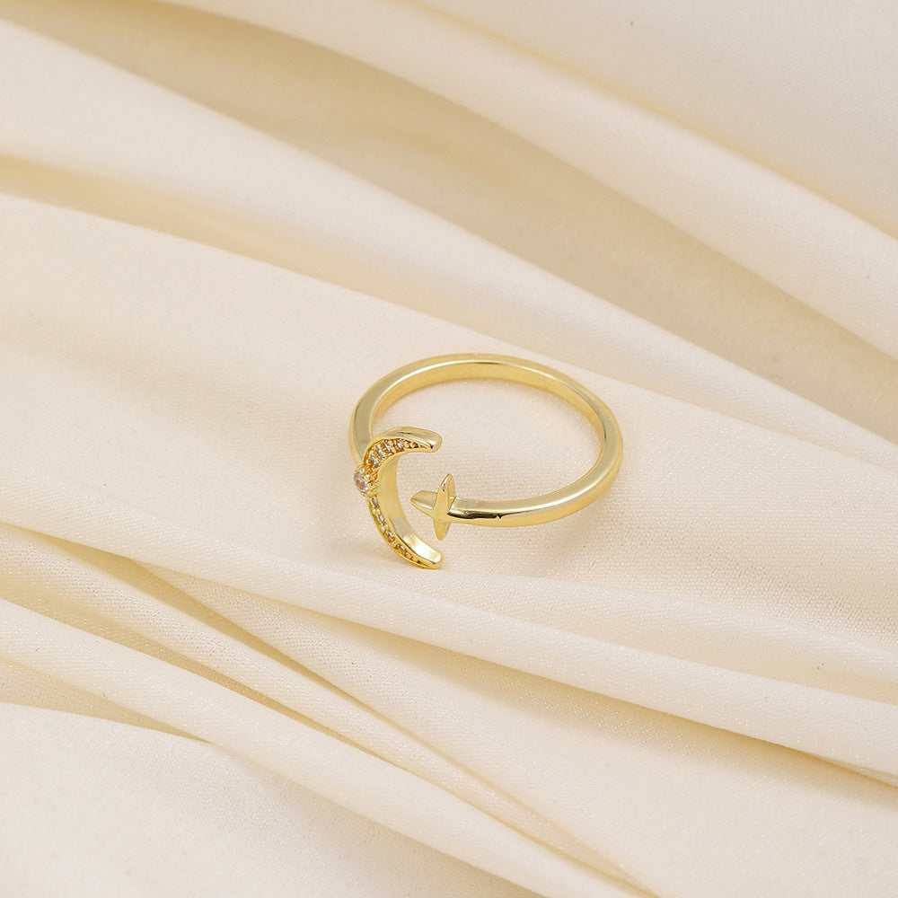 Versatile personality opening copper micro-inlaid zircon ring star moon butterfly shooting star simple retro style