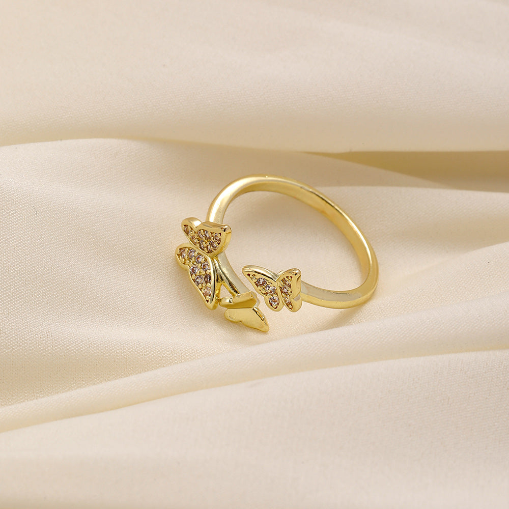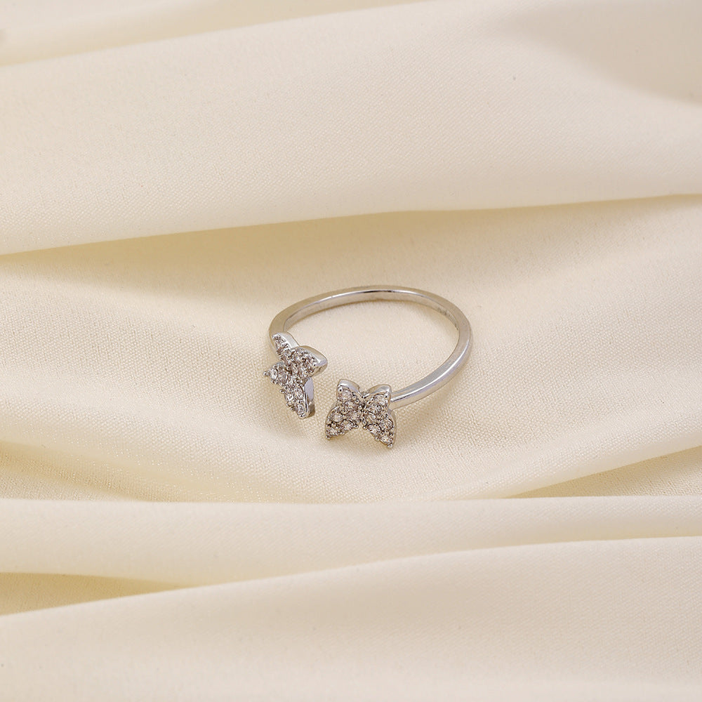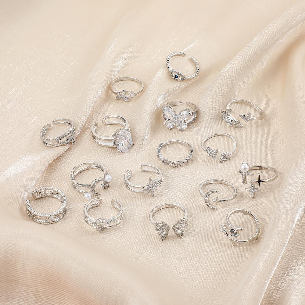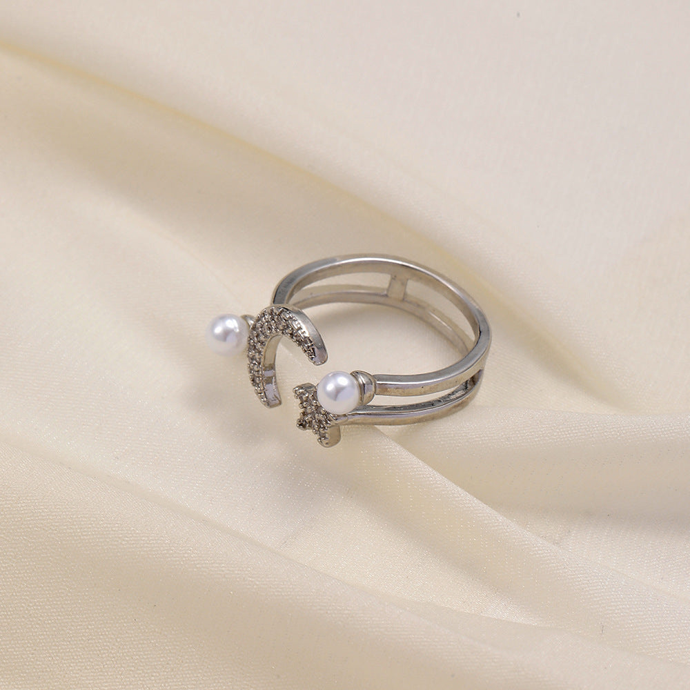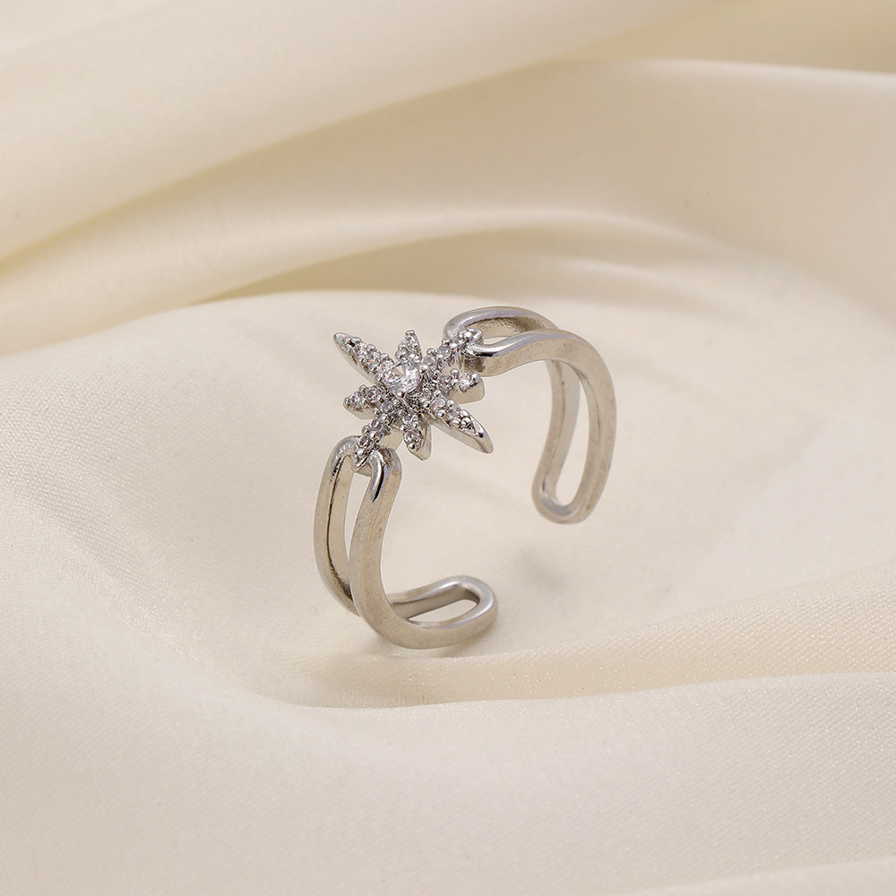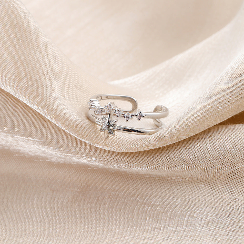Versatile personality opening copper micro-inlaid zircon ring star moon butterfly shooting star simple retro style