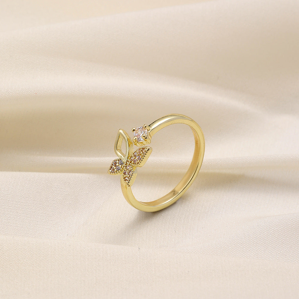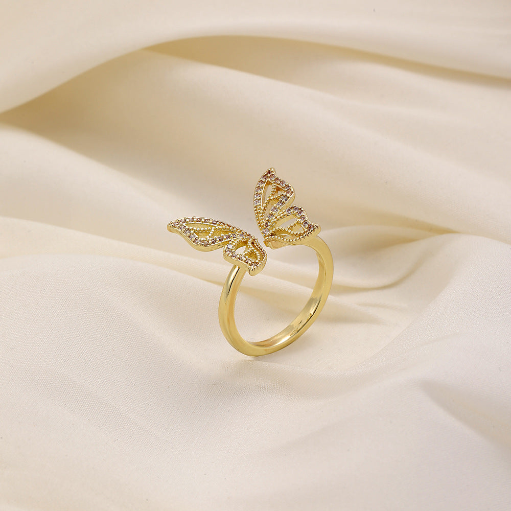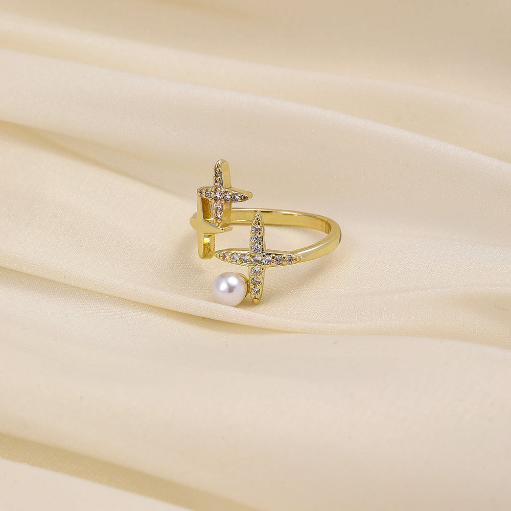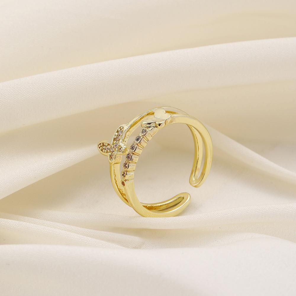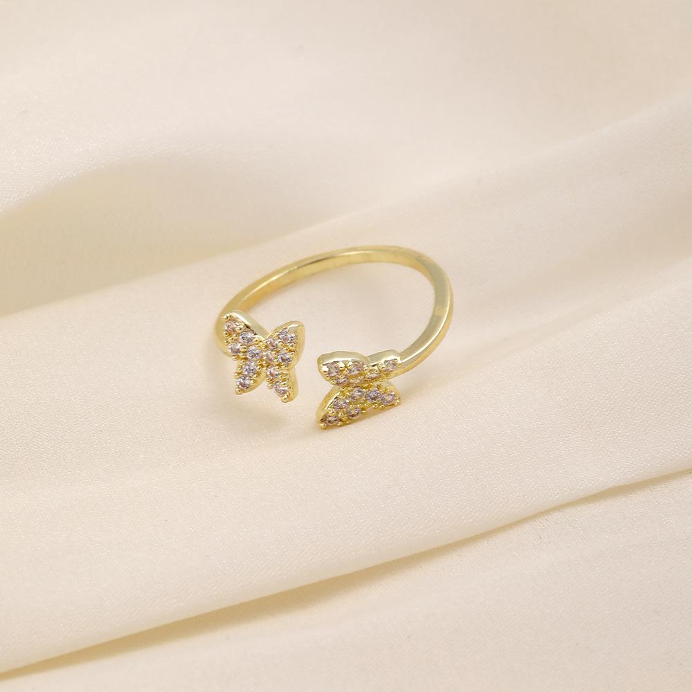 Versatile personality opening copper micro-inlaid zircon ring star moon butterfly shooting star simple retro style