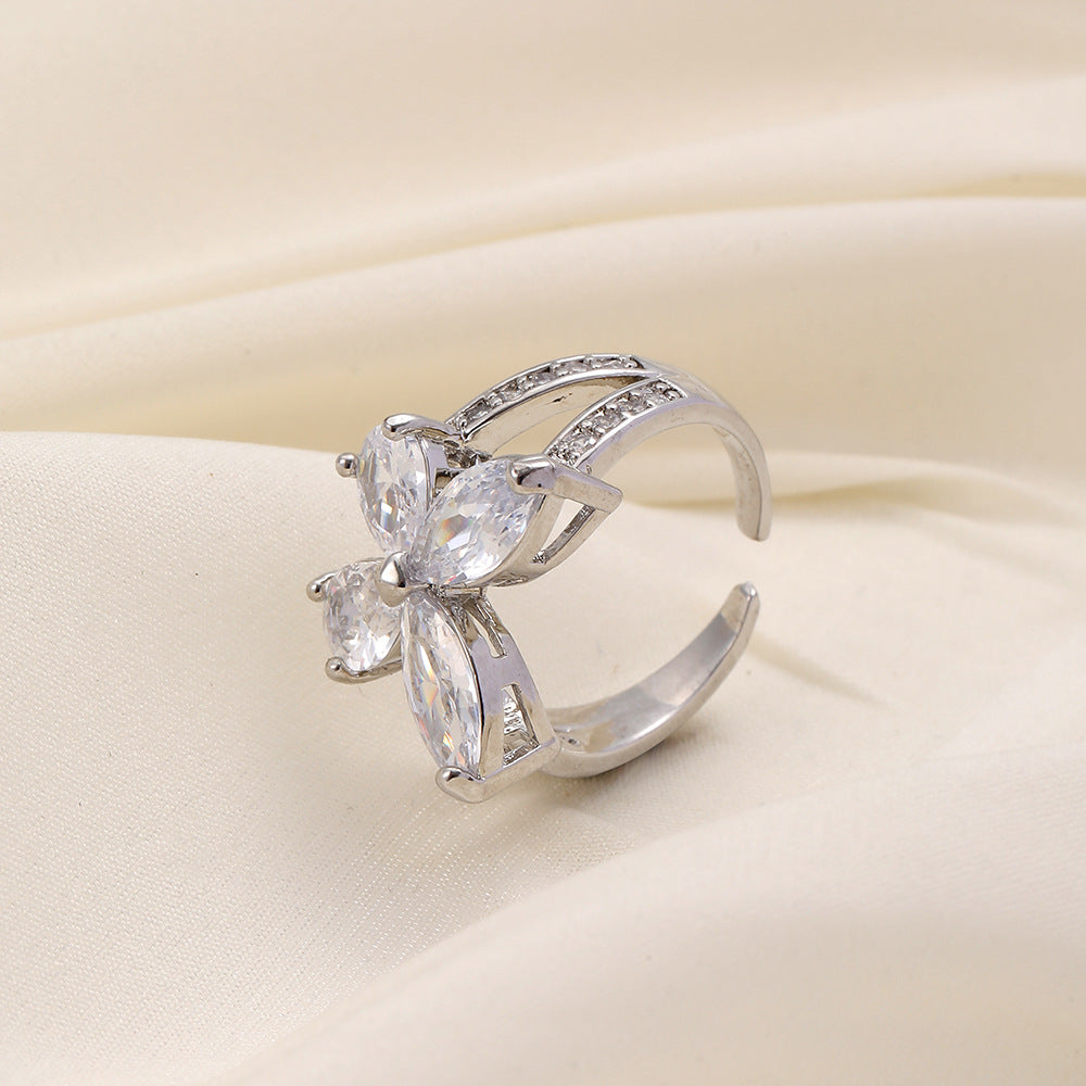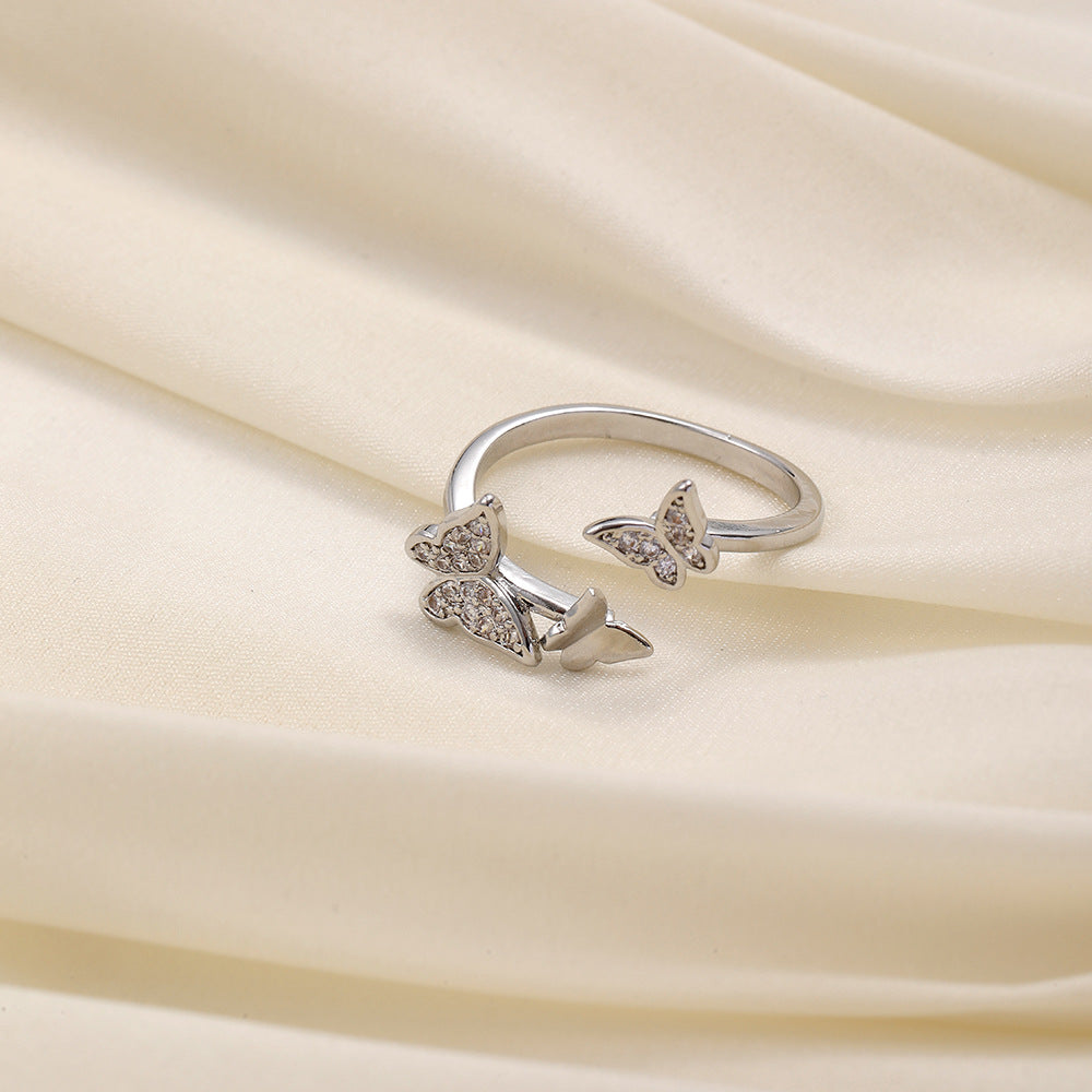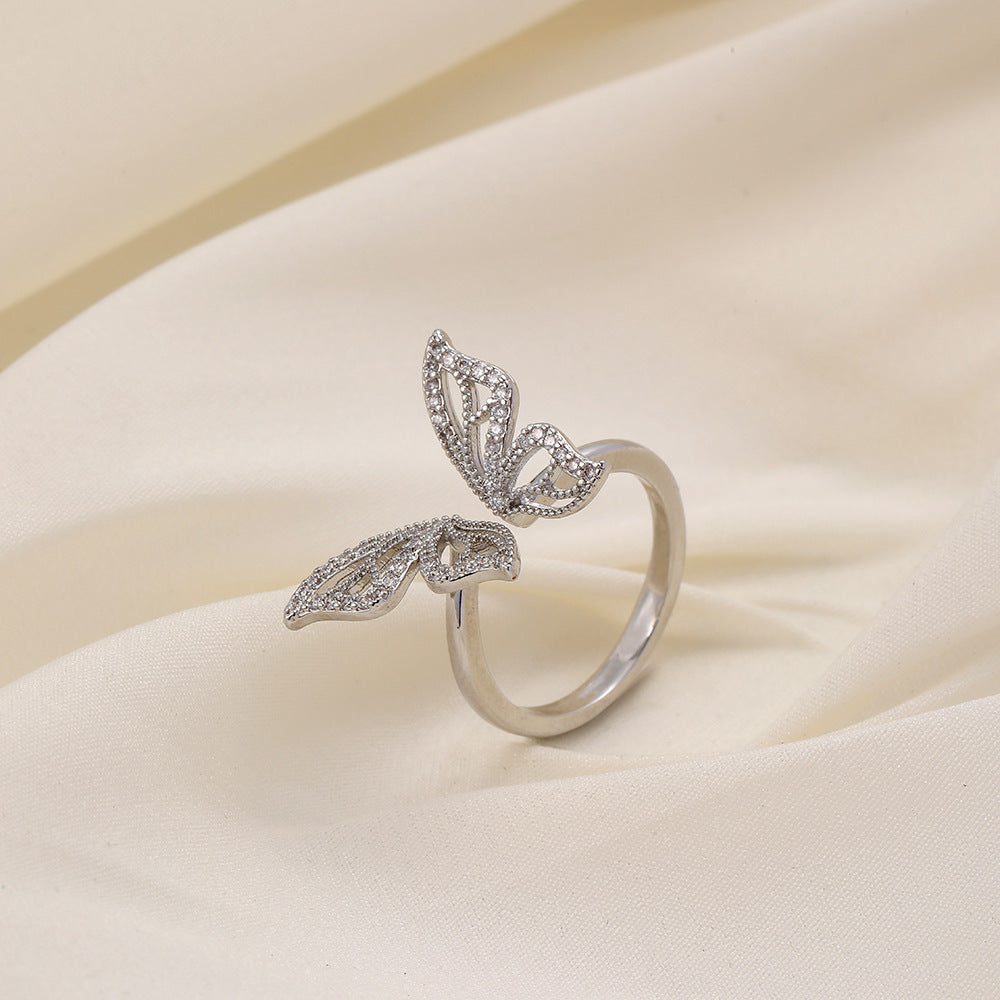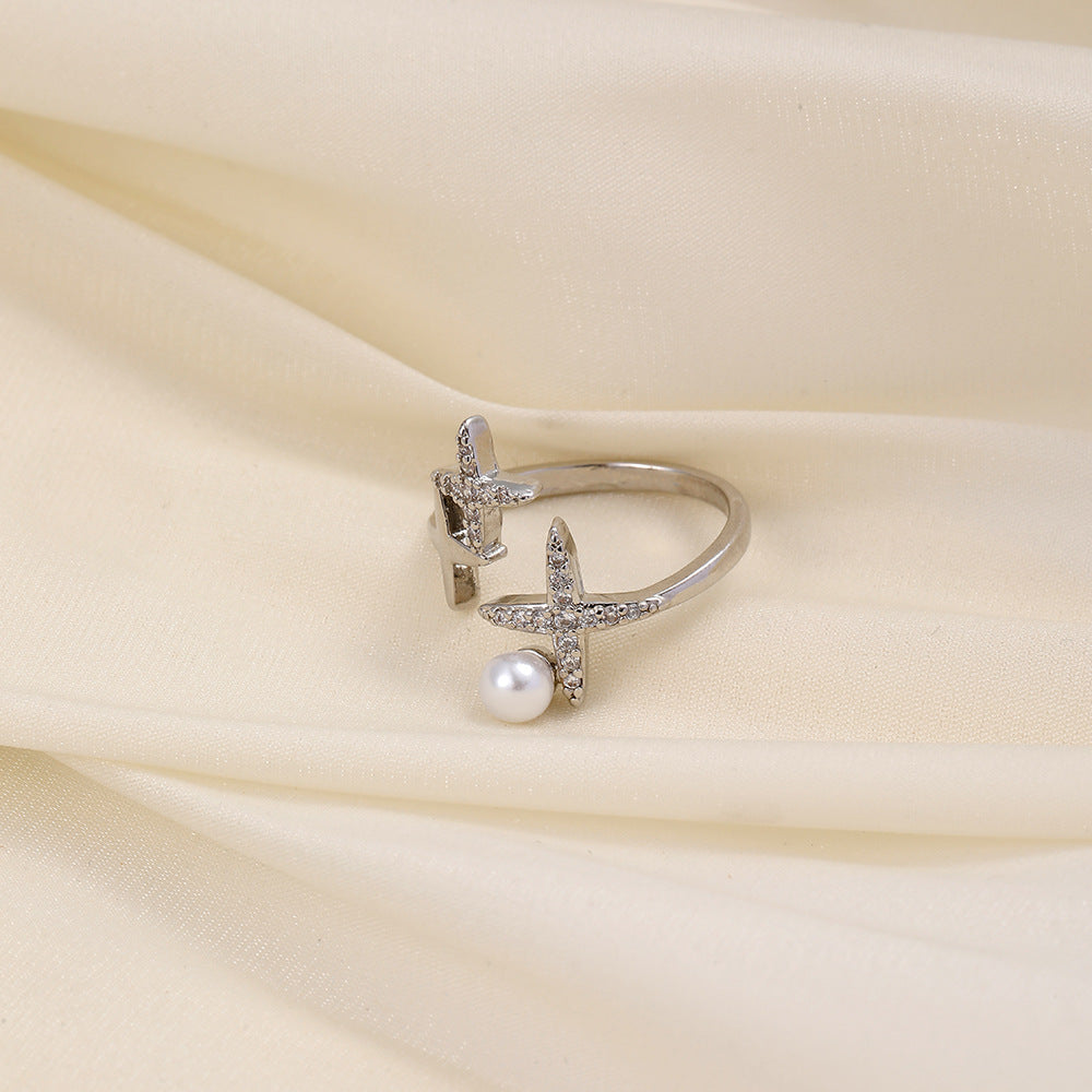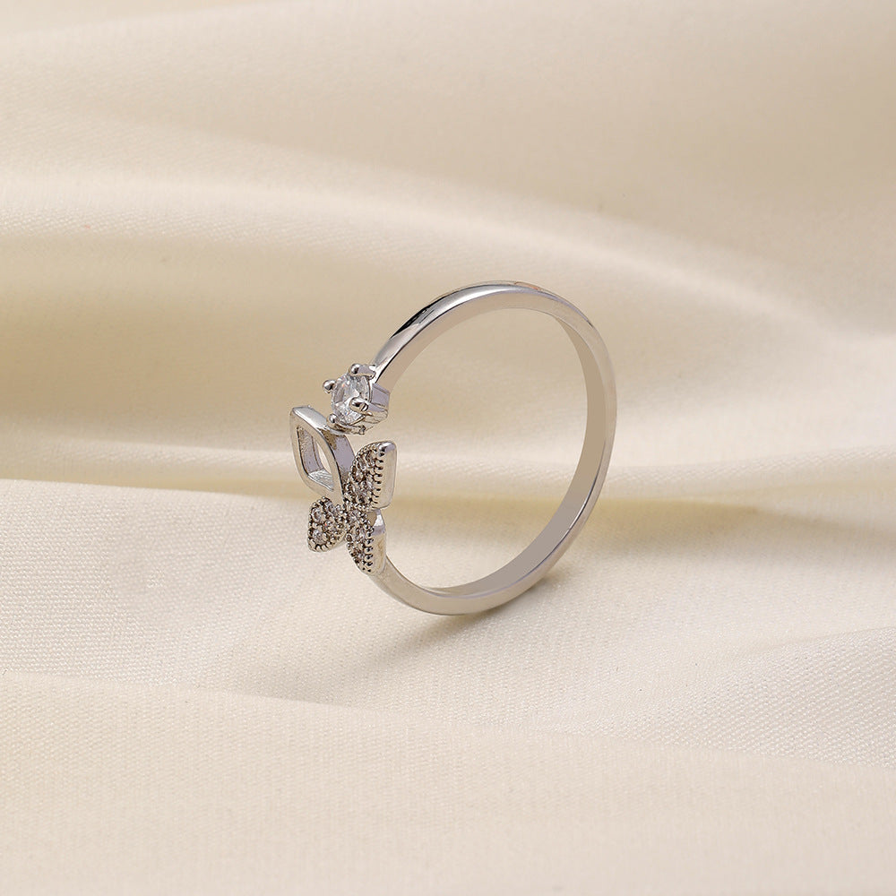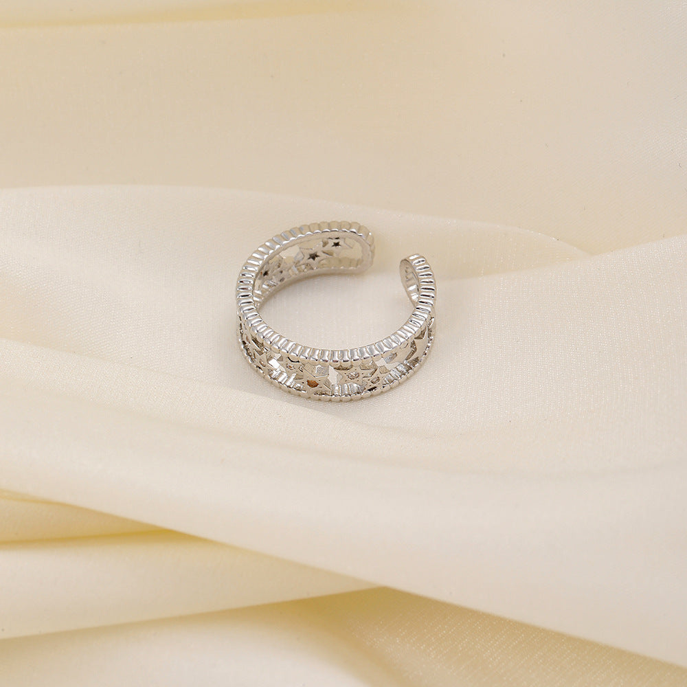 Versatile personality opening copper micro-inlaid zircon ring star moon butterfly shooting star simple retro style