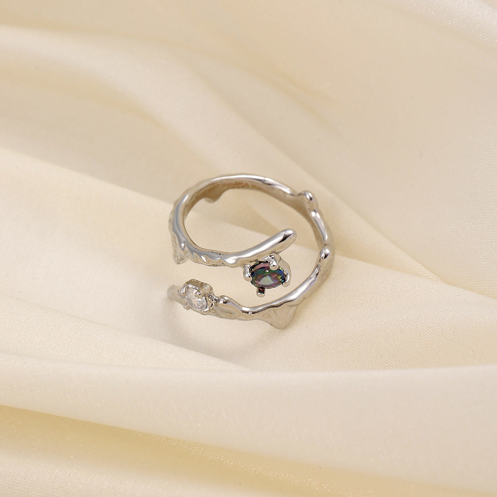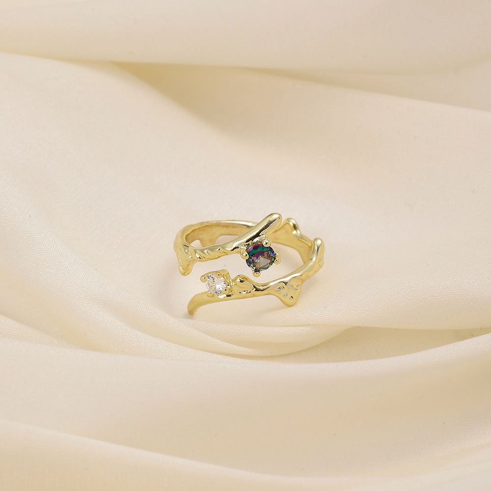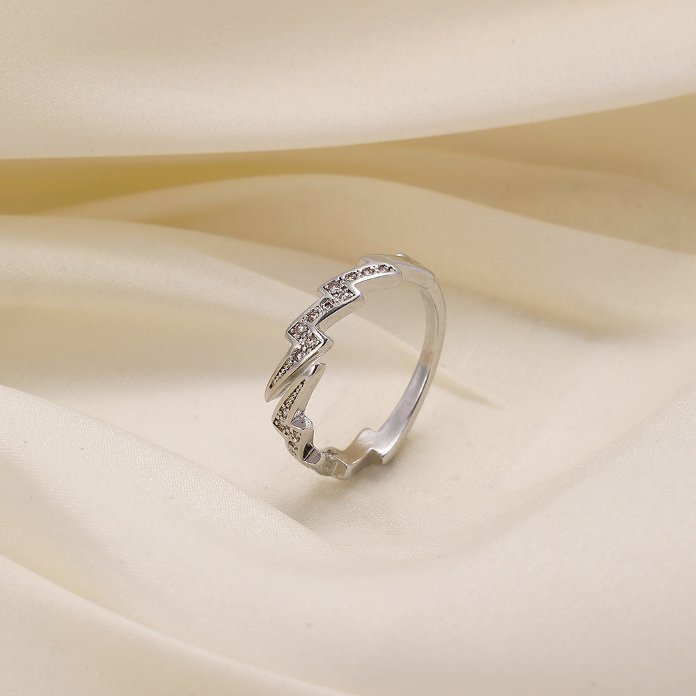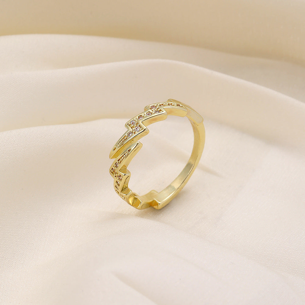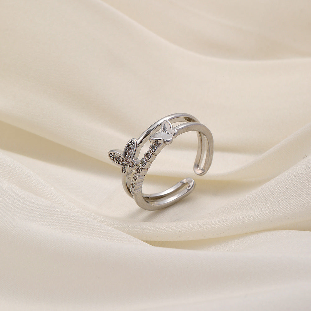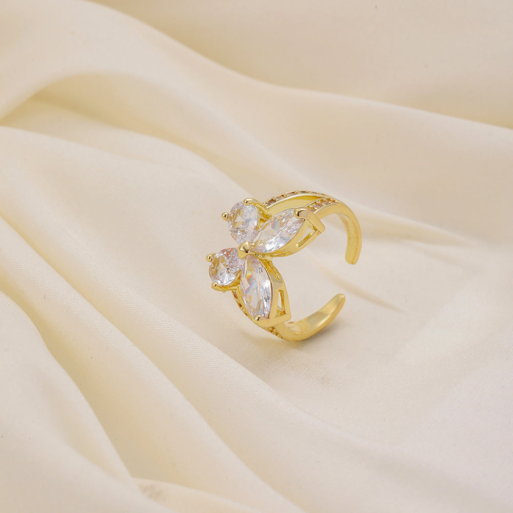 Versatile personality opening copper micro-inlaid zircon ring star moon butterfly shooting star simple retro style