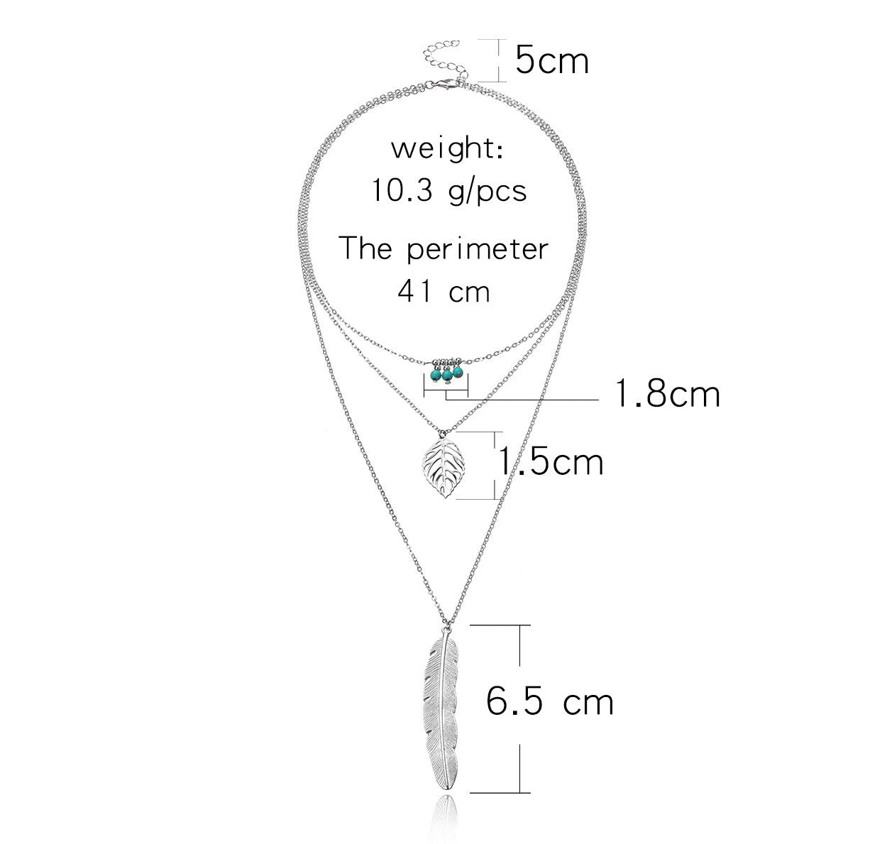 Women's Necklace Multilayer Jewelry Fashion Versatile Turquoise Leaves Handmade Beaded Feather Pendant Necklace