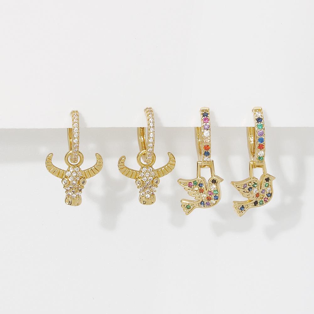 ZE63 Jewelry Simple Creative Bull Head Flying Bird Earrings Copper Zircon Geometric Fashion Earrings